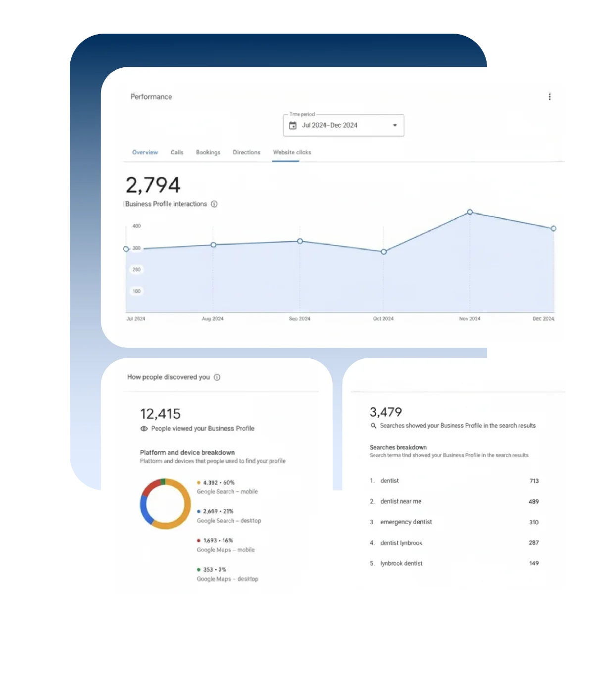 Ranked on Google page two for key dental terms. Achieved top-three position across NYC.